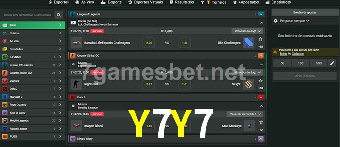 A aposta Y7Y7 oferece aos jogadores a experiência mais conveniente de apostas em eSports!
